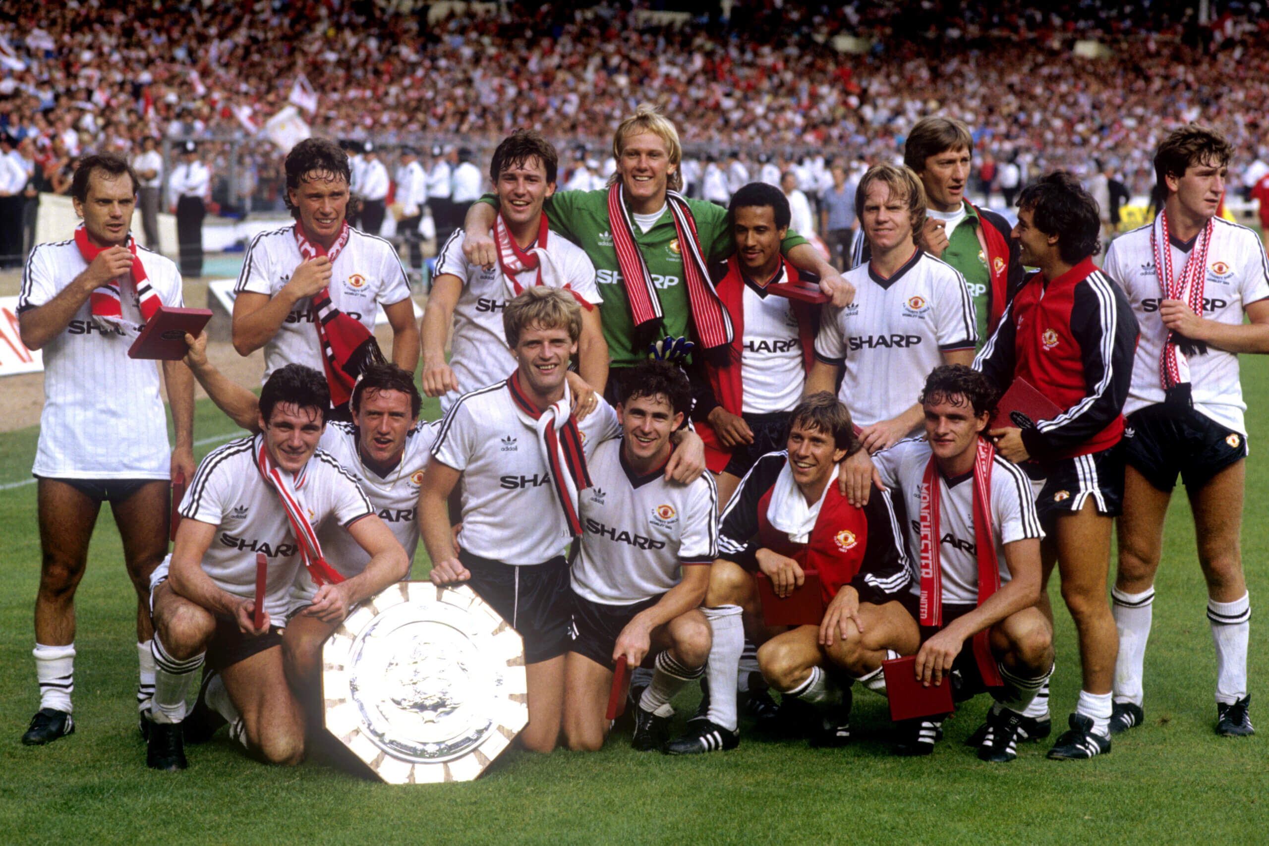 Sharp Electronics was Manchester United’s first shirt sponsor. Which kit manufacturer was also associated with the club at that time?